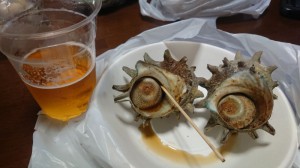 毎年、姉妹都市から出店している大きいサザエ。