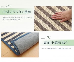 カジュアルな雰囲気の、2色のマリンボーダー柄の竹カーペットです♪