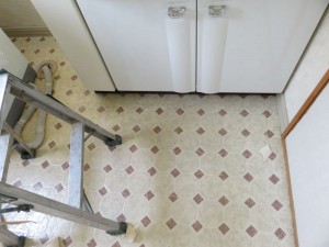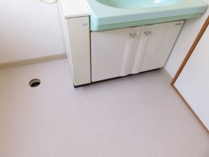 洗面脱衣スペースのクロス貼替え工事とクッションフロア貼替え工事を承りました。