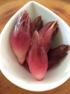 きれいに赤く染まってくれ、見た目もおいしそうなみょうが漬けができました。