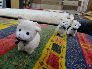 さてさて、ゆうあいブログに何度か登場していると思いますが、ゆうあい諏訪店カーペットコーナーにいつもいるウールPRマスコットちゃん達をご紹介します。