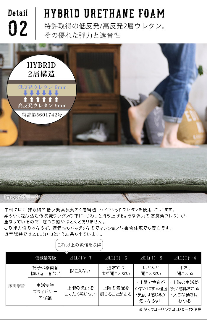 10mmという少し長めのパイルと2層のハイブリットウレタン使用した、触り心地と踏み心地に抜群のラグです♪