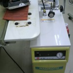これまでに長野にあるゆうあい縫製機械の紹介で裁断・丈決め機や巾継ぎ・芯付け機・本縫いミシンを紹介しましたが今日はあまり特殊ではありませんですが、アイロンの写真を乗せます。