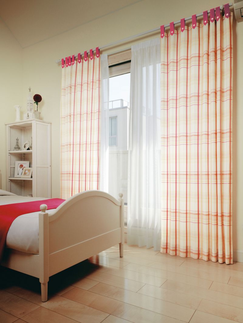 このカーテンをはずすときにはポールも一緒にはずさなくてはなりませんので、洗濯やクリーニングの際にちょっと手間ですが、その分の価値は絶対にあります。ハトメスタイルのカーテンの注文時は採寸方法が一般のカーテンとは違いますので専門のスタッフにご相談ください。