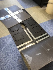 A社様の事務所の床のタイルカーペットの下はこのような状態で。 パソコンなどの配線が詰まっているのでしょう。
