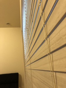 昇降させるためのコードがスラットの重なる部分に空いているので閉じた状態だと穴が隠れます。スラットの重なりも隙間が少ない印象です。