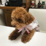 こちらの展示会はペット用品の販売もしているので、普段は自分で縫って犬の服を作っていますが、今年は服を着てくれる子が2匹いるので思い切って買ってきちゃいました!