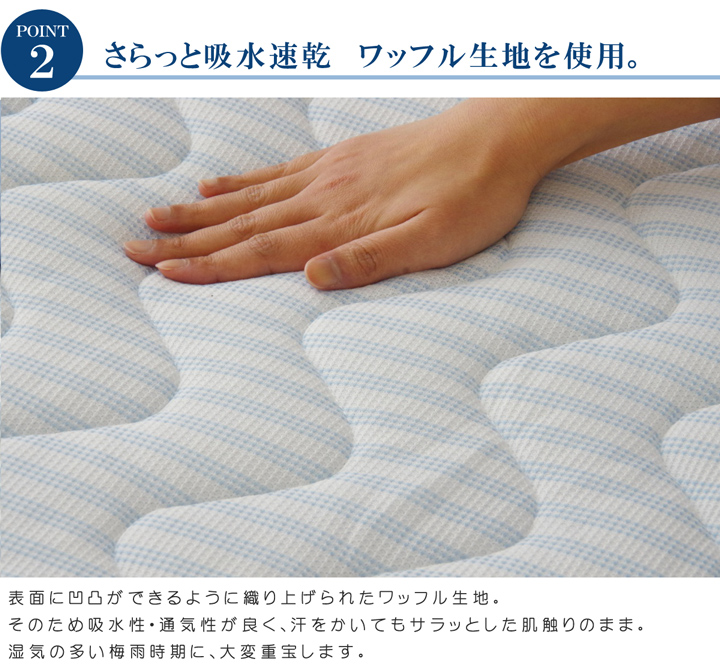 裏面にはさらさらドライが特徴の吸水速乾ワッフルを使用しています。