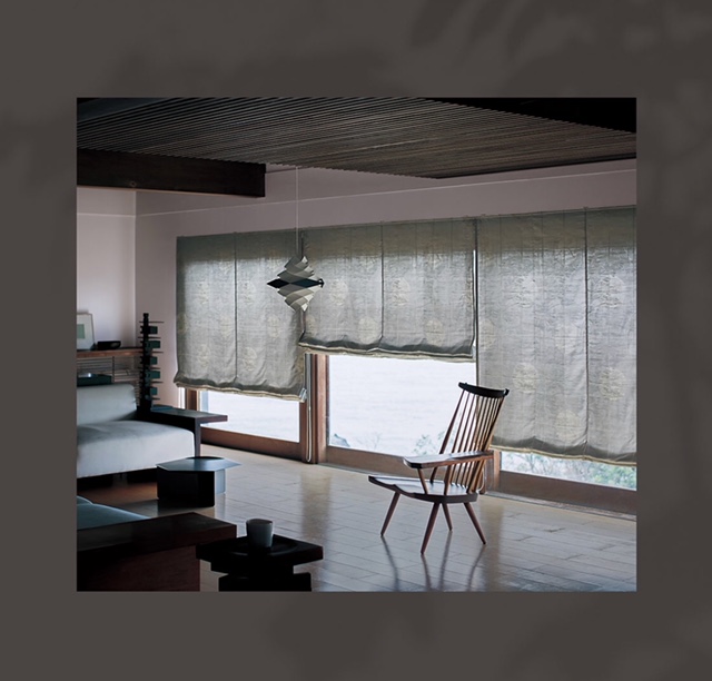 昼と夜、日の光や夜の部屋の灯りの変化で見え方が変わる、柄が浮き出る生地。