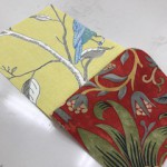 そのソファをウィリアムモリスの生地で作って店内に飾ってみたいとやってみたのがパッチワークです。モリスの生地って高級じゃないですが、なのでサンプルカーテンやファブリックパネル作った生地のはぎれをとっておいてあるので、それらを繋げて作ってみました。