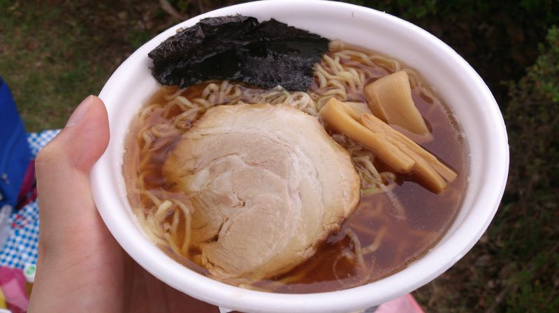 いろいろ買い込んだ後は、休憩もかねて外の芝生の上でお昼御飯です。