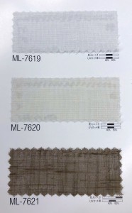 次は、フシのある糸を使った素材感のある生地選んでいただいたお部屋。大きな窓の外は豊かな自然に囲まれているので、真っ白なレースより少し色がある方が景色にも、選ばれたドレープにもしっくり馴染むのではないかとおすすめしました。(写真の真ん中の色)