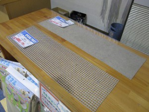 こちらの写真は、「安心滑り止めシート」というもので、玄関マット等におすすめのマットに貼り付けるようなタイプの滑り止めになります。