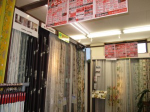カーテンコーナーも限定商品でお値引きさせて頂いております。高級品コーナーのカーテンや