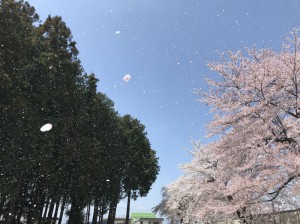 2週間ほど前、車を走らせていると突然桜の花びらが大量に舞ってきて、風上に目をやるとこの風景でした。