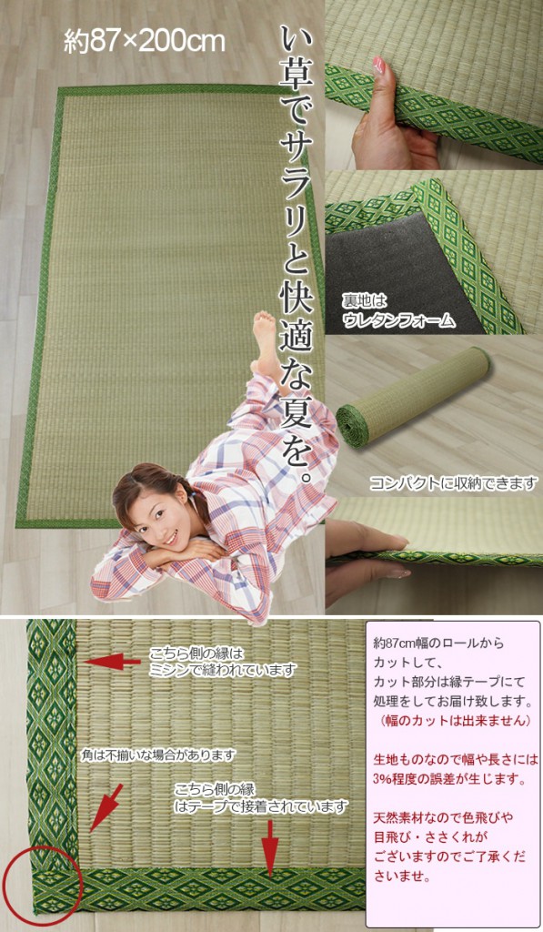 ウレタン入り い草ごろ寝マット 約87×200cm