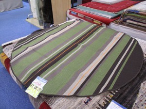 「洗えるコンパクトラグ」という名で当店で販売しているもので、色がグリーン、ピンク、ブルーの3色、サイズは170cmの円形、90cm×180cm、130cm×180cm、180cm×180cmの4種類から選ぶことができます。
