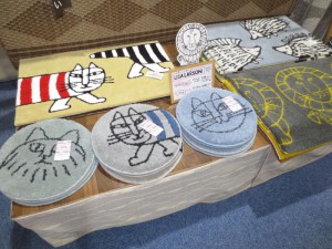 先日紹介したリサ・ラーソンシリーズのカーテン見本が完成して展示出来ました