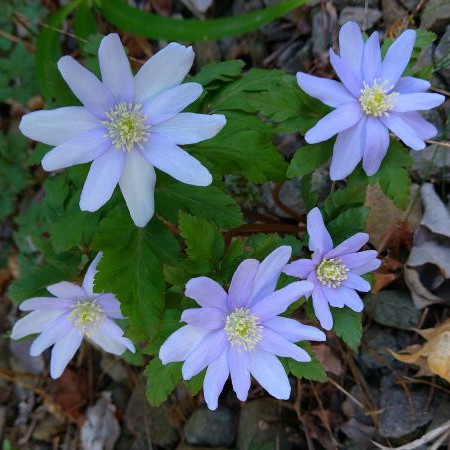 左から「キクザキイチゲ」「ボケ」「ハナニラ」です。