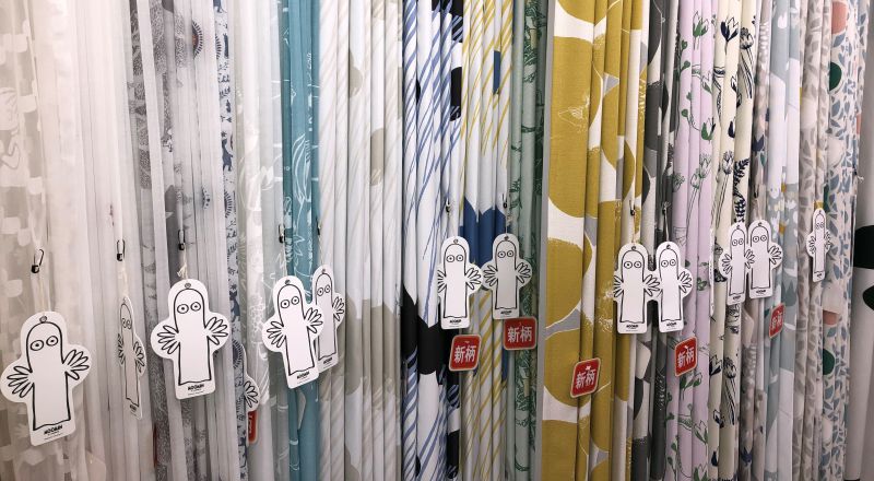 カーテンは全柄見本サンプルとして展示してあります!厚地生地でロールスクリーンも作製出来ますので、しっかりと柄を見せたい時や小窓などで存在感をアピールしてくれます。またラグやクッションカバーもあり、カタログから見て頂く事が出来ます。