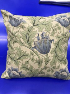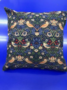 時々、注文が入ることがありますが、こちらのモリスデザイン生地でこの様にカーテンと揃えてクッションカバーも作れますので、よろしくお願いいたします。