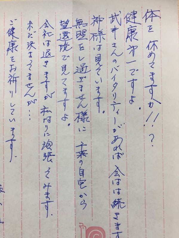いつも僕の無駄な動き(?)を見て、「身体に気をつけなさい」とお手紙を下さる優しい方でした。