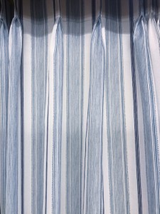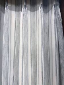 「ヒーチャム ストライプ」 様々な表情があるティッキングストライプ柄はクラッシックエレガントからリラックス感のあるインテリアまで、幅広いテイストに合わせやすいデザインのレースです。