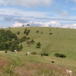 頂上付近に山に放牧された乳牛達を発見。