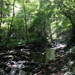 青空が綺麗で、吹き抜ける風が爽やかで、空気が美味しかったです。 こちらは、頂上に着くまでに立ち寄った森の中に流れる清流。 水の音にも癒されます。
