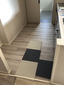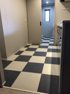 またもう一つの洗面脱衣には、テキスタイルフロア7000のFF7007でにむを市松張りで施工させて頂きました。