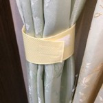 もしカーテンがかかっている場所に上の写真のようなタッセルをひっかける房掛けが取り付けられない場合にタッセルに紐ではなくマジックテープで止める様にすることもできます。