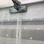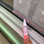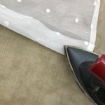 簡単に制作の流れはまず裾から生地を吊って暖簾の上部のくっつく長さにチャコペンで印をつけます。印を付けた部分から上を生地を合体するように縫い合わせます。縫い合わせたら生地の幅を必要な分に切ります。そして両耳を縫います。裁断機を使って必要丈に切り落とし暖簾棒が通るように袋縫いをします。