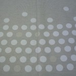 まずはシェードの幕体の製作を始める際、生地の柄を見てシェードの巾・丈から良い柄が出る位置を決めます。生地の柄が小柄で製作するシェードの巾・丈が大きいものはあまり悩まなくてもよいのですが、生地の柄が大柄で製作シェードの巾・丈が小さい場合出す柄を決めるのに作り手側のセンスが問われるようで、悩みます。