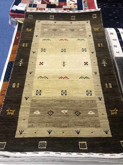 ペルシャギャベよりもすっきりした印象のインドギャベ。(お値段もペルシャギャベよりすっきり)今回入荷したのは、ウール+コットンの機織りタイプです。