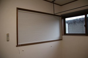 さらに、1階吹き抜けと繋がる開口に、ハニカムスクリーンをつけました。