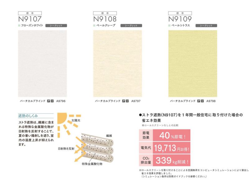 このロールスクリーン生地は繊維に含まれる特殊な金属酸化物を反射することによって