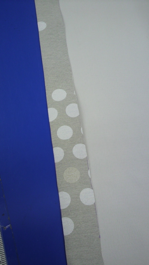シェードの裾はウエイトバーという重りのある棒を入れる袋状に縫います。この時、シェードの操作方向(シェードを上下させる紐がついている方向)によってウェイトバーを出し入れする入り口を開けておきます。