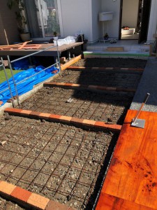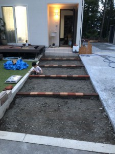 しかし、ただ「土間コン」というのはアプローチを兼用している手前さみしく感じられましたので目地にレンガを入れた洋風のテイストとなりました。