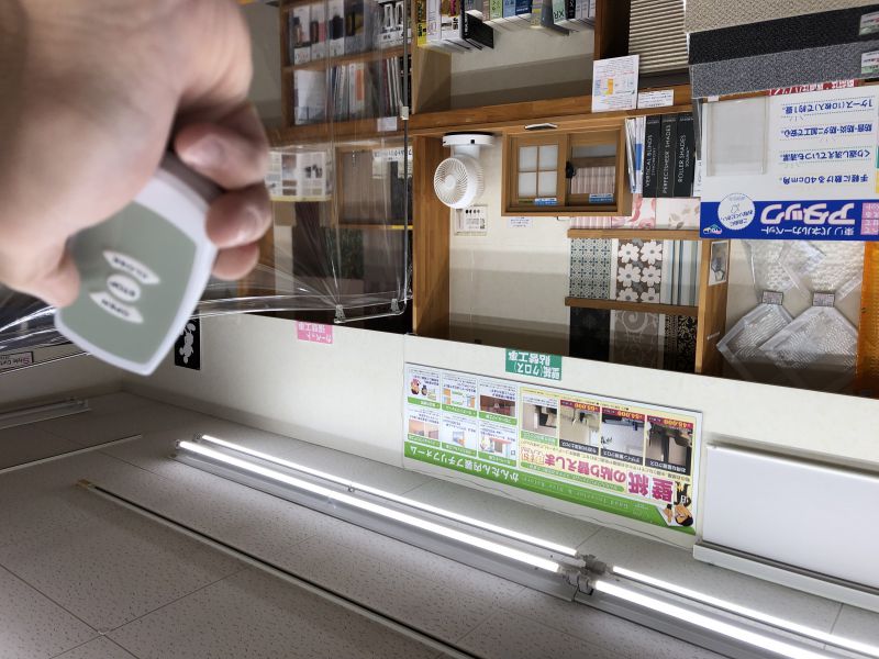 ゆうあい松本店では立川のロールスクリーンの電動タイプのサンプルを付けました。 その名も「ホームタコス ラルクシールド」です。