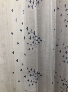 当店の鳥をモチーフにしたカーテン