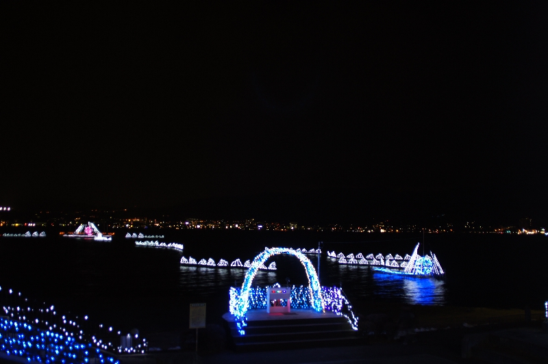 冬の諏訪湖を彩る「湖上イルミネーション」です![]()