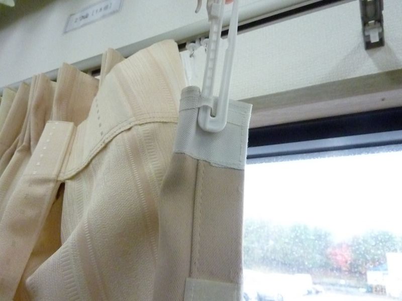 その後、裏地を引っ掛けたフックごと、カーテンに装着します。