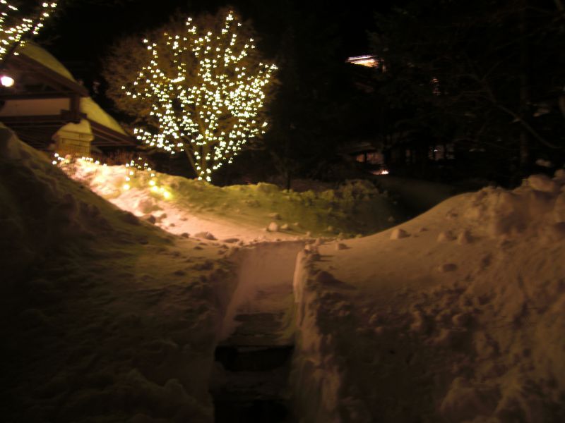 やはりどこへ行っても雪の多さにびっくりしますね。宿泊先も同様で、皆さん雪かきがんばったんだなと思うところがたくさん。露天風呂はいつにない風景を堪能させていただきました。
