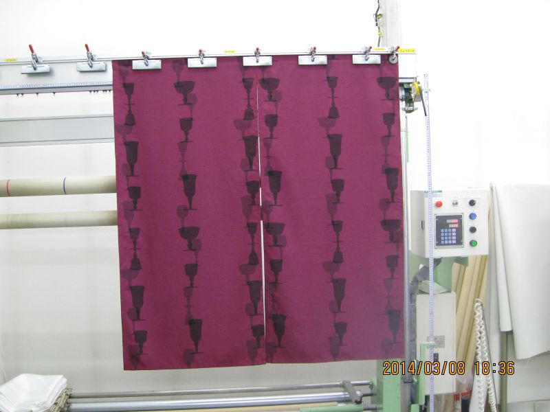 自社カーテンショールームに縫製加工所をもっているゆうあいならでは、細かな対応ができます。長野県内はもとより松本市や塩尻市にお住まいの方でも、持ち込み生地にてオーダーカーテンの制作をしたり、このような、のれんの注文も受けております。