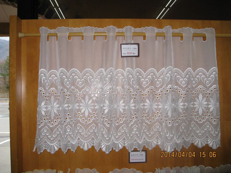 長野県の茅野市にあるカーテンショップゆうあいですが、カーテン屋なので当然カフェカーテンも置いてあります。ポールを通す穴の開いているタイプの物やオーダーでお作りするものなどあります。