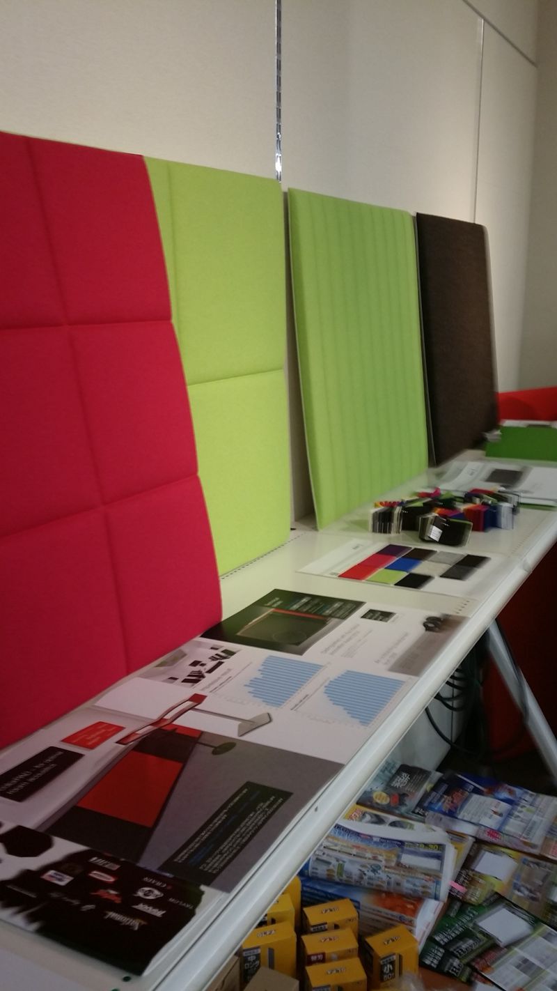 面白い防音材を見てきました。色がカラフルで防音効果は抜群!!音教室などにも使用されているそうです。ただし価格は驚きの・・・・ですけどね