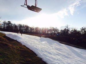 見ての通りにまだ雪は降っていないので、人口の雪になり、コースもかなり狭いです