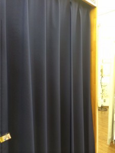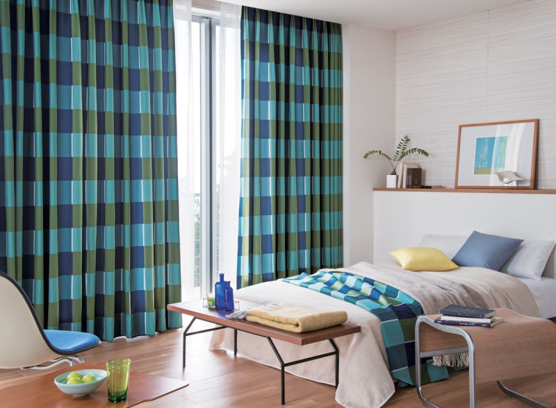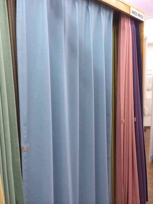 こちらは無地の青色のカーテンになります。色合いが異なる無地の色は多数あります。