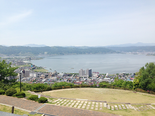石彫公園近くのおっきな石に座って諏訪湖を眺めながらひと休み![]()