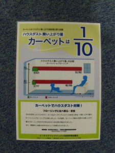 部屋の中のハウスダストが、フローリングに比べて、舞い上がりにくいというデータです。 (さらに…)